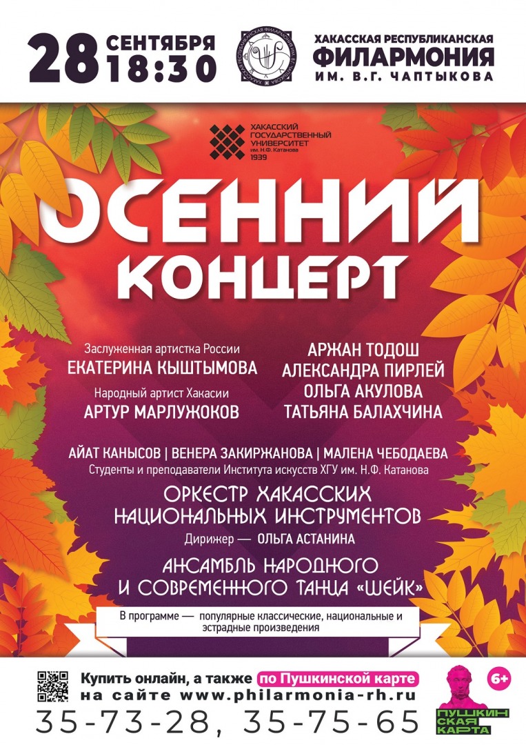 28 сентября в актовом зале главного корпуса Хакасского госуниверситета им. Н.Ф. Катанова состоится благотворительная концертная программа «Осенний концерт».