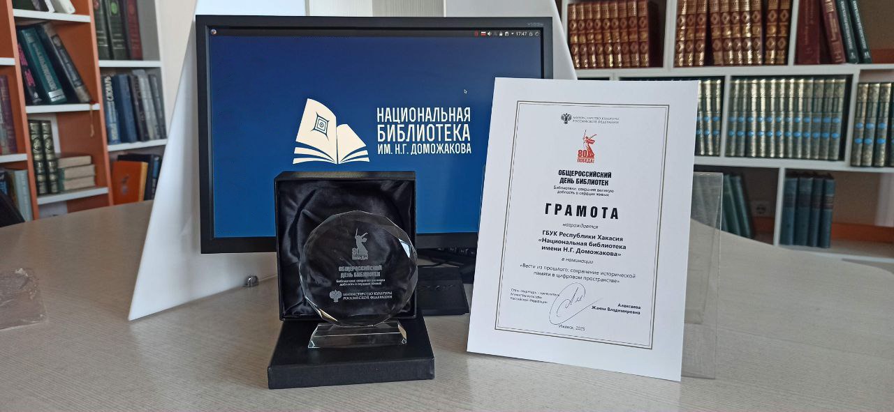 В этом году были отмечены лучшие практики, реализованные в регионах России в Год защитника Отечества. Национальная библиотека имени Н.Г. Доможакова награждена в номинации «Вести из прошлого: сохранение исторической памяти в цифровом пространстве» за реализацию проекта «Да не угаснет памяти свеча», направленного на сохранение исторической памяти о вкладе Хакасии в Победу и воспитание патриотизма у молодежи с использованием современных технологий.