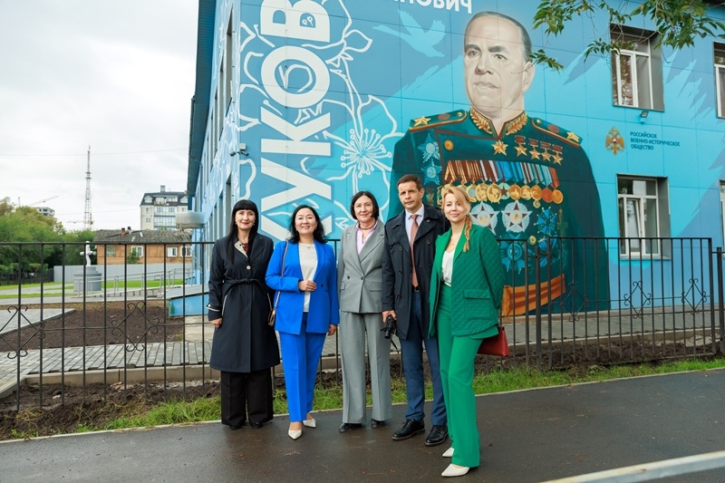 Портрет легендарного полководца был создан художником Даниилом Васильевым при поддержке РВИО, и теперь украшает фасад учебного заведения со стороны улицы, которая носит имя маршала Жукова. В церемонии открытия мурала приняли участие представители Российского военно-исторического общества: первый заместитель Исполнительного директора Александра Коновченко и директор Департамента региональной политики Аяна Шойгу.