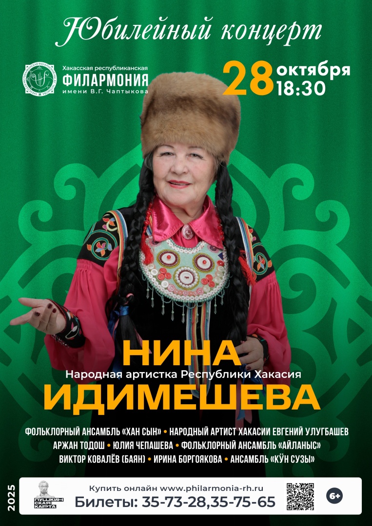 28 октября 2025 года Хакасская республиканская филармония имени В.Г. Чаптыкова будет отмечать выдающееся событие – юбилей народной артистки Республики Хакасия, знаменитой исполнительницы хакасских песен Нины Серафимовны Идимешевой.