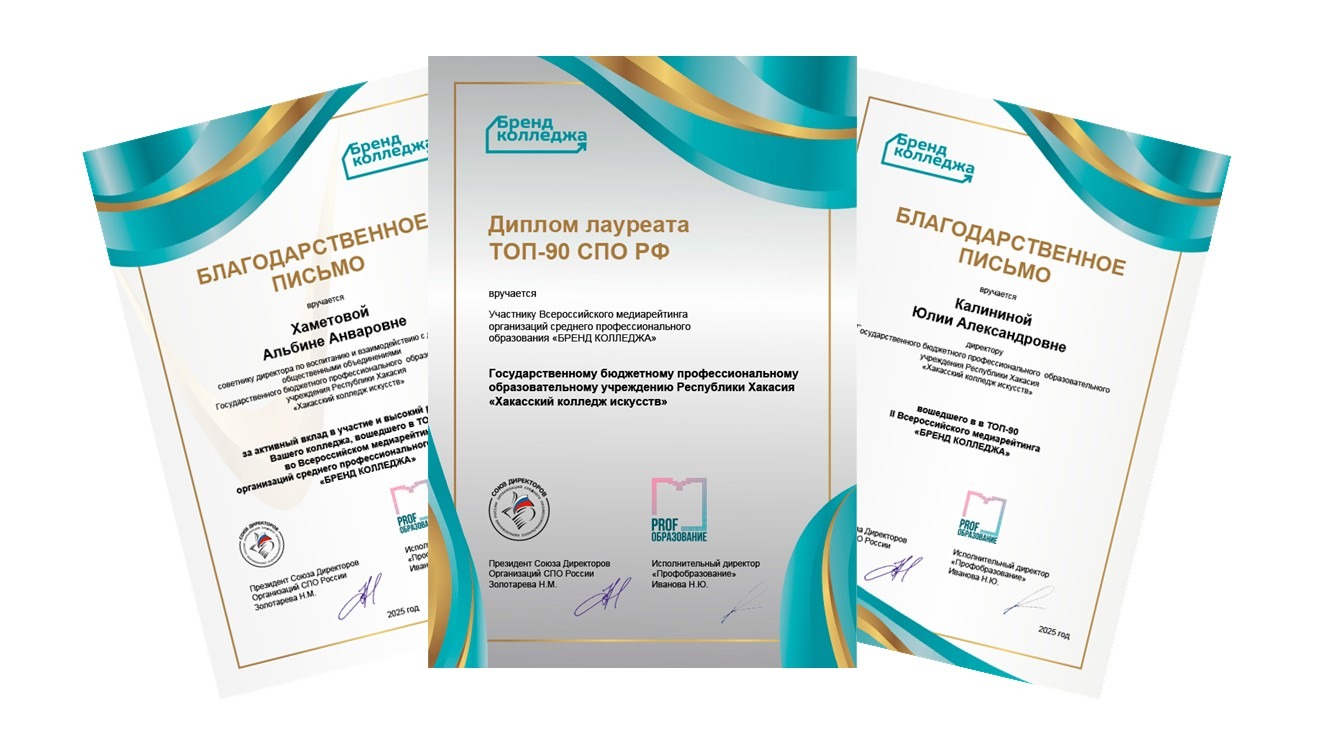 Хакасский колледж искусств стал лауреатом и вошёл в ТОП-90 Второго Всероссийского медиарейтинга организаций среднего профессионального образования «Бренд колледжа».