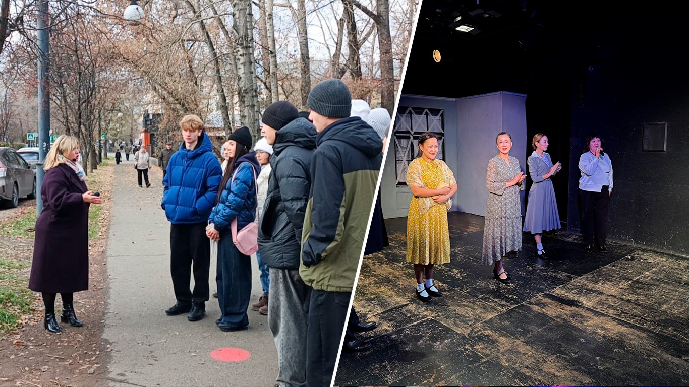 Особым и запоминающимся моментом экскурсий стало посещение Хакасского национального драматического театра имени А.М. Топанова, где школьники смогли ощутить связь времен и глубже прочувствовать историю родного края. На малой сцене театра ребят ждал настоящий сюрприз – фрагмент из спектакля «Первая Ленинградская», поставленного режиссером Светланой Чаптыковой. Эта постановка рассказывает о судьбе первой хакасской студии, студенты которой, обучаясь в блокадном Ленинграде, проявляли героизм и самоотверженность. Для школьников это стало настоящим погружением в историю, знакомством с мужественными людьми и их подвигами.