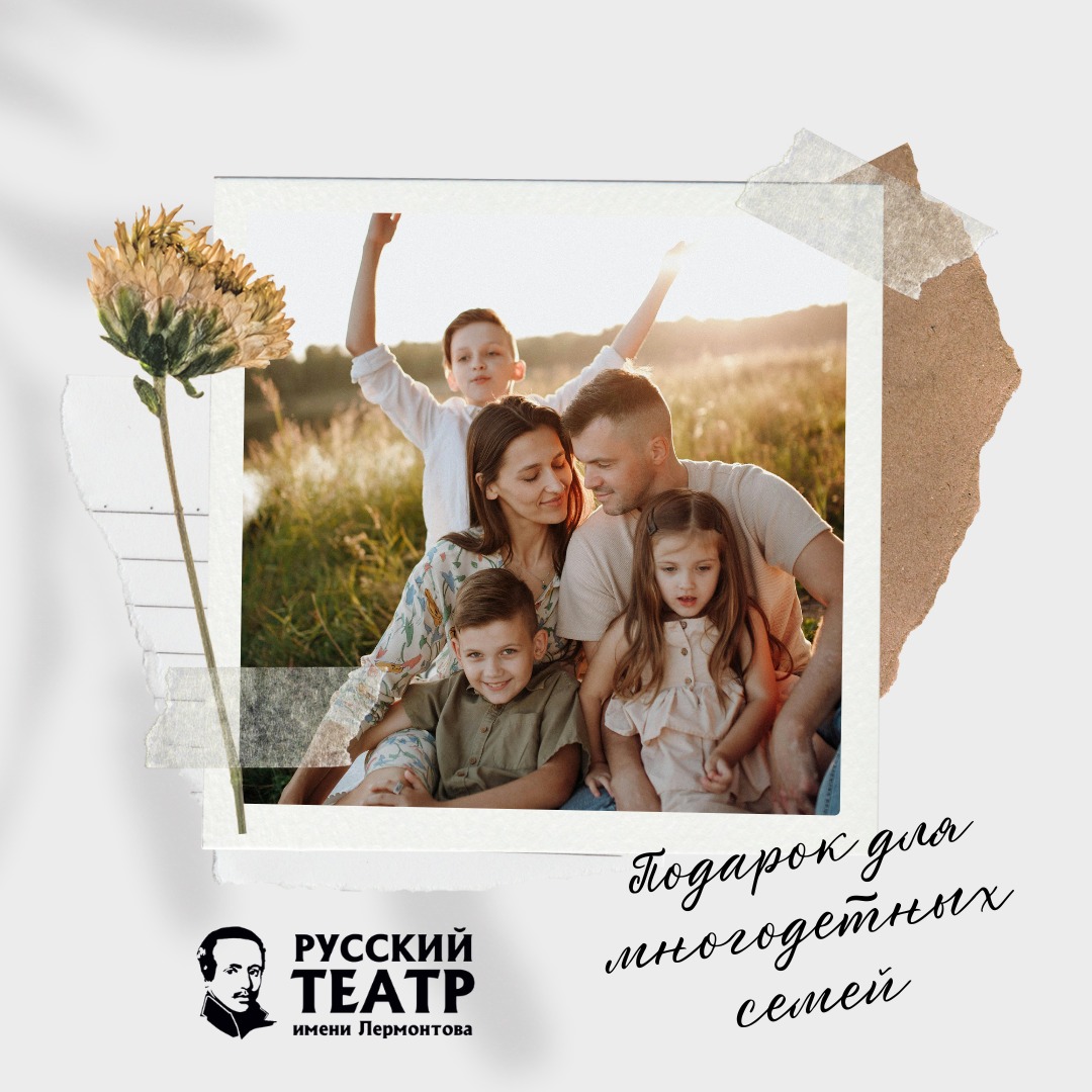 Русский академический театр драмы имени М.Ю. Лермонтова ко Дню многодетных семей дарит таким семьям возможность бесплатно посетить спектакли из своего репертуара.