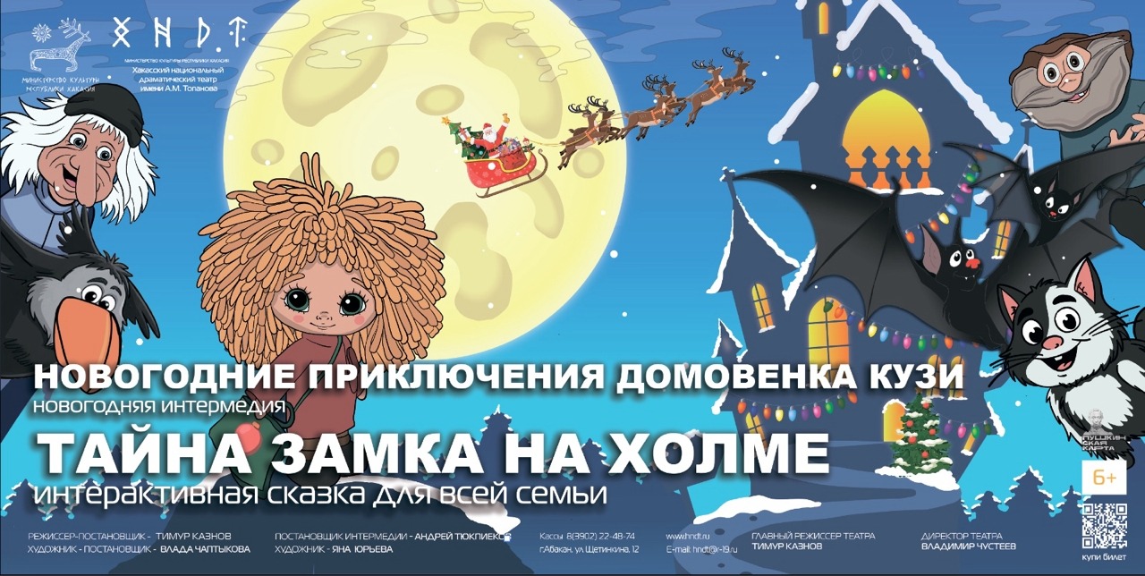 В преддверии новогодних праздников Хакасский национальный драматический театр имени А.М. Топанова подготовил новогоднюю программу для детей и их родителей. С 22 по 25 декабря в большом зале театра будут показаны спектакли «Тайна замка на холме» и «Новогодние приключения домовёнка Кузи».