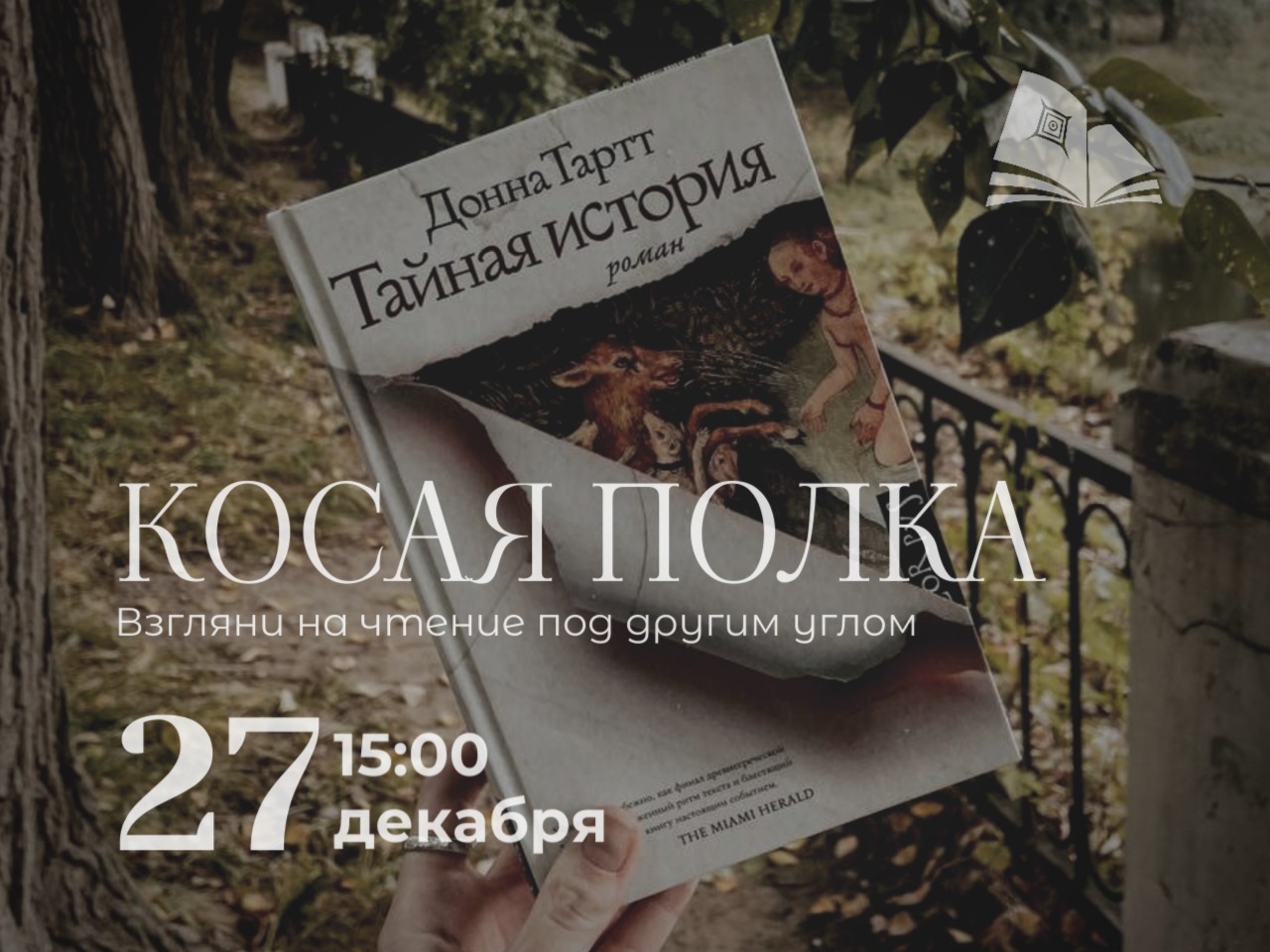 Главная библиотека Хакасии приглашает на встречу, посвященную культовому роману Донны Тартт «Тайная история». Мероприятие пройдет в рамках встреч клуба «Косая полка» 27 декабря в 15:00 и обещает стать жаркой дискуссией для всех, кто прочел книгу.