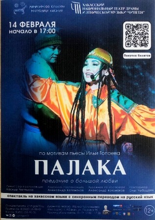 14 февраля, в день самого романтичного праздника Хакасский национальный театр драмы и этнической музыки «Читiген» представляет нежную и пронзительную историю «Палака» по мотивам пьесы И.Топоева, режиссер К. Чаптыков.