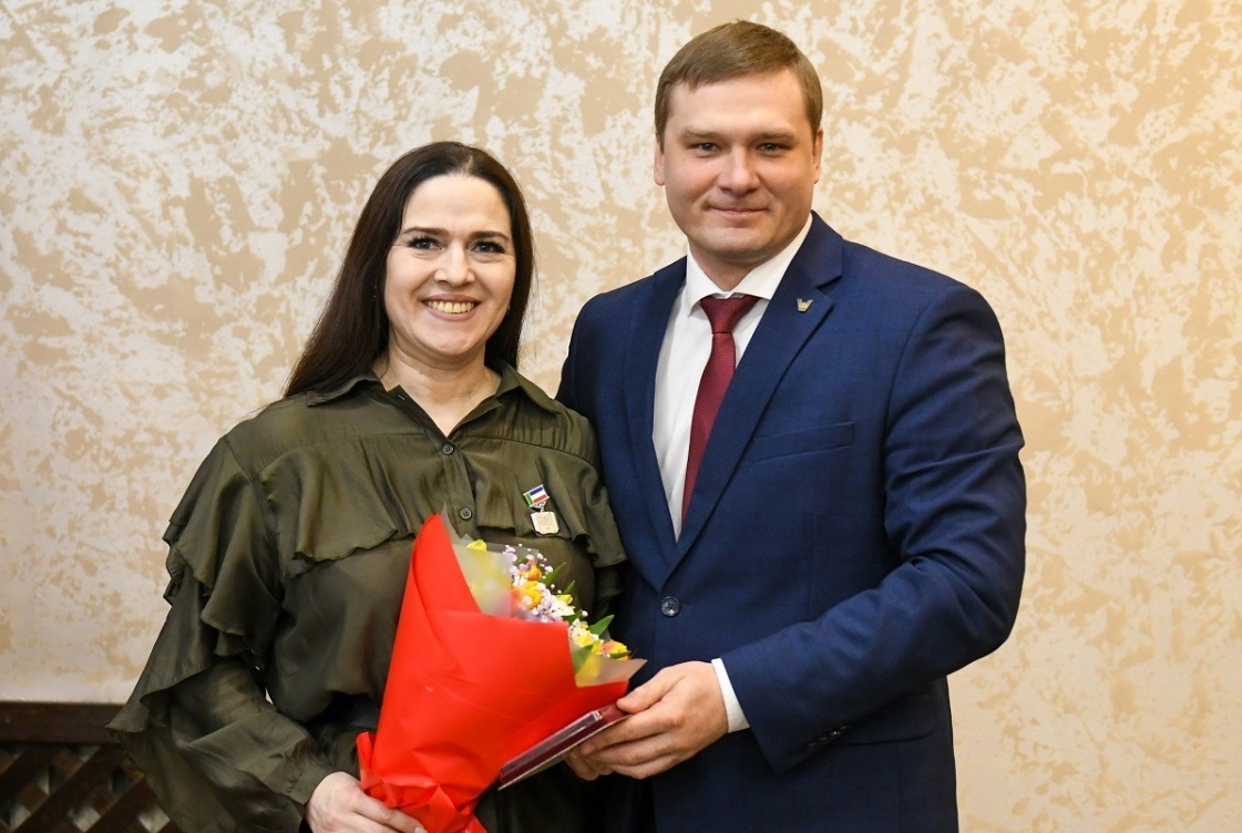 Заслуженную награду артистке вручил Глава Республики Хакасия Валентин Коновалов на торжественной церемонии награждения в честь Дня работника культуры.