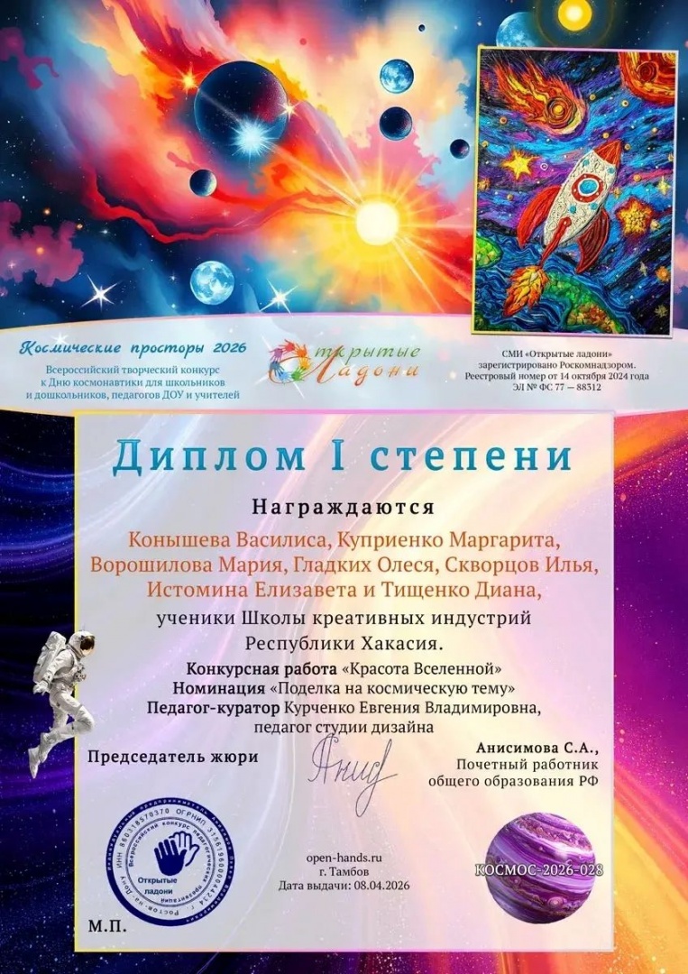 Совместный проект студий «Дизайн» и «Фото и видеопроизводство» Школы креативных индустрий занял первые места в двух престижных конкурсах: IX Межрегиональном творческом конкурсе «Космос глазами детей» и Всероссийском творческом конкурсе «Космические просторы».