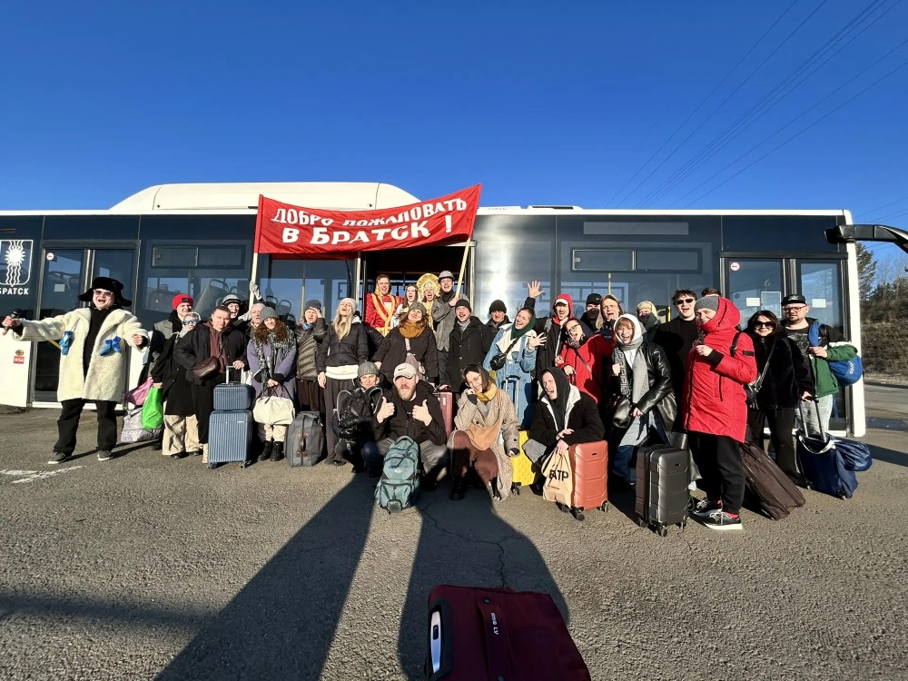 Прибытие хакасских артистов в Братск началось с тёплой встречи на железнодорожном вокзале — с хлебом-солью и сказочными персонажами: Медведем, Лисичкой и Снеговиком, которые развлекали гостей по дороге в город.