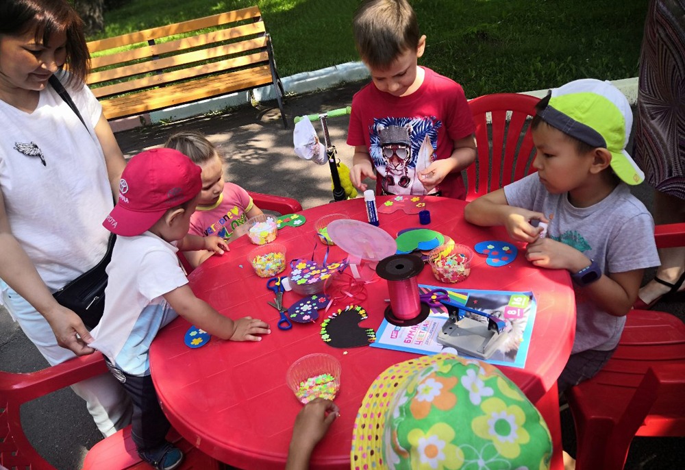 Акция прошла в Городском детском парке «Орлёнок». На одной из площадок Хакасская республиканская детская библиотека представила детскую этническую мастерскую «Некогда скучать». Юные участники мастер-класса изготовили из бумаги сувениры в виде хакасского национального украшения - пого.