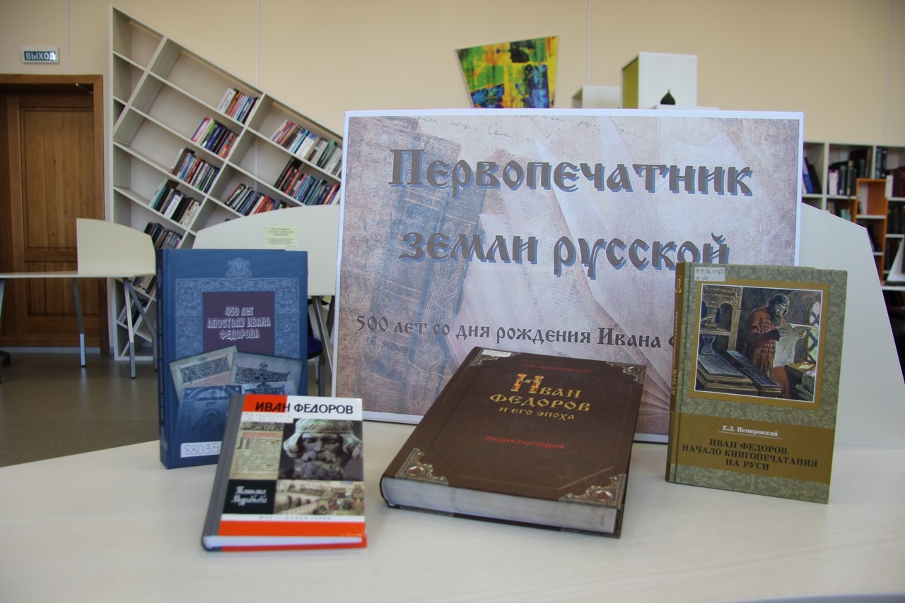 Жизни Ивана Федорова посвящен второй раздел выставки «Подвижник книжной культуры». Евгений Немировский в своей книге «Путешествие к истокам русского книгопечатания» проводит читателей увлекательным путем поисков и находок документов, памятников старины, связанных с жизнью и деятельностью основателя первой на Руси типографии. С наиболее полной биографией Федорова можно ознакомиться в книге Татьяны Муравьевой «Иван Федоров» из серии «Жизнь замечательных людей».