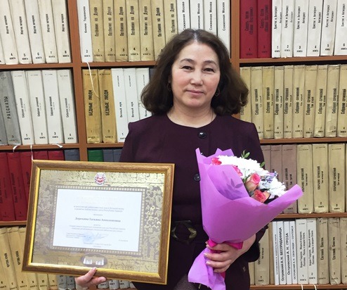Сотрудник учреждения культуры был удостоен Почётной грамоты Главы Республики Хакасия за многолетний добросовестный труд и большой вклад в развитие библиотечного дела Республики Хакасия.